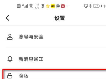 4.第四步,我们可以看到如下图所示的设置页面,点击箭头所指的隐私选项。