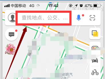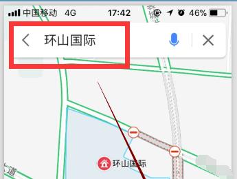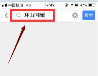 3、点击主界面“搜索”的横框,输入你想去的地名(例如:环山国际)。