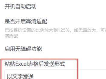 6. 最后根据下图所示,成功将【粘贴Excel表格后发送形式】设置为【以文字发送】。