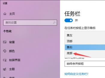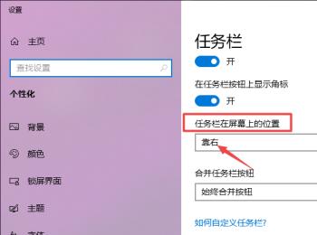 3. 第三步进入【任务栏】页面后,先找到【任务栏在屏幕上的位置】选项,接着根据下图箭头所指,发现当前设置为【靠右】。