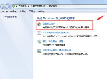3. 第三步打开【默认程序】窗口后,根据下图箭头所指,点击【设置默认程序】选项。
