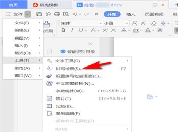 4. 在打开的工具子菜单中,选择“拼写检查”的选项。