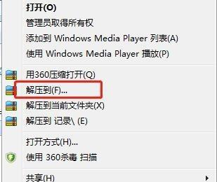 2. 在打开的右键菜单中,选择“解压到…”选项。