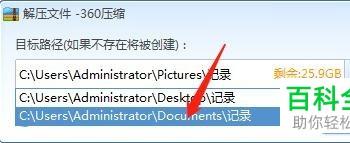 3. 如图,在弹出的解压文件的窗口中,点击“目标路径”右侧的箭头。