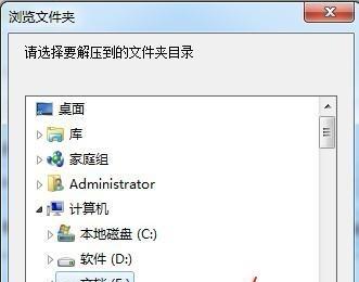6. 在弹出的浏览文件夹窗口中,选择想要解压到的文件夹目录,点击底部的“确定”按钮。