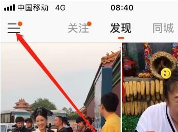 1. 第一步,打开手机中的快手应用,进入应用主页后,点击左上角的三横图标。