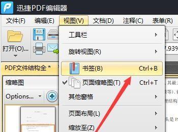 2、那么,我们在PDF文件编辑软件中如何查看书签呢?请看如图所示的内容中,点击菜单选项中视图菜单,在下拉菜单中点击书签选项即可。