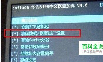 进入recovery主界面后,选择对手机进行双清,移动选择【清楚数据/恢复出厂设置】然后再选择【是的-清空所有数据】然后按电源键确认