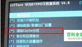 返回到recovery主界面,然后用音量键选择【清空Cache分区】,然后再选择【是的-清空Cahce】然后按电源键确认