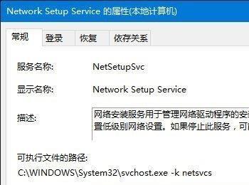 2、在服务窗口中找到Network Setup Service项,打开其属性。