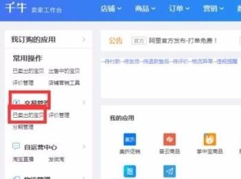 4. 第四步,进入千牛卖家工作台页面后,在左侧点击交易管理选项,然后点击已卖出的宝贝。