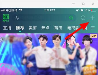 3. 之后我们在手机中打开爱奇艺,进入主界面之后我们点击右上方+图标。
