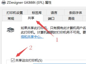 2. 在弹出的属性窗口中,上方切换到【共享】选项下,然后勾选上【共享这台打印机】选项,然后点击底部的【确定】按钮。