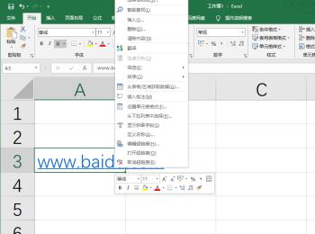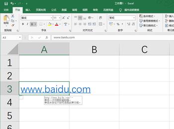 2. 如图,在单元格中,输入一个百度的网址,来给大家演示。
