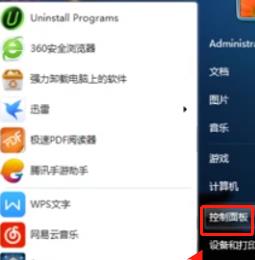 1. 点击左下角的“开始”图标,弹出窗口选择红色框的“控制面板”选项