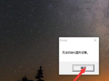 3. 第三步如果弹出【无法初始化图形设备】窗口,根据下图箭头所指,点击【确定】选项。