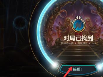 6. 最后重新打开游戏,即可正常显示画面,根据下图箭头所指,点击【接受】选项就能成功进入对局。