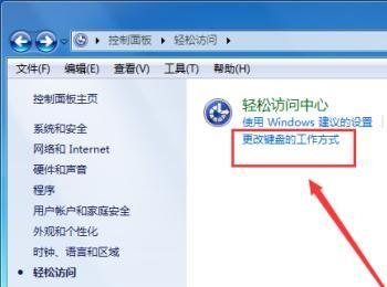 更换键盘的工作方式 在【轻松访问】界面中,点击【更换键盘的工作方式】,如下图所示: