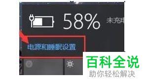 1. 首先第一步先点击任务栏【电池】图标,接着在弹出的菜单栏中根据下图箭头所指,点击【电源和睡眠设置】选项。