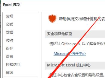 4. 在弹出的Excel选项窗口中,点击左侧的“信任中心”选项。