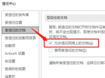 以上就是怎么给Excel设置允许信任网络上的文档的具体操作步骤。