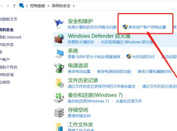4.在打开的系统和安全页面,在安全和维护下,点击"更改用户帐户控制设置"的链接;