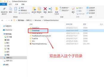3. 第三步进入系统盘后,根据下图箭头所指,依次打开【Windows-SoftwareDistribution】文件夹。