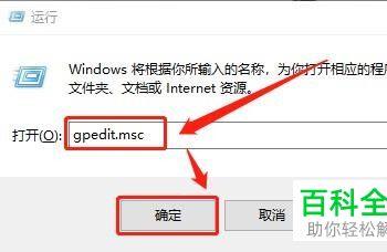 5. 在打开的运行窗口中,输入【gpedit.msc】,点击确定或按回车键。