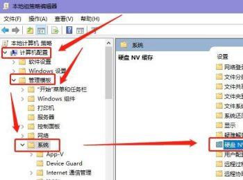 6. 如图,进入【本地组策略编辑器】页面后,依次点击左侧的【计算机配置】—【管理模板】—【系统】选项,在右侧打开的页面,找到【硬盘NV缓存】选项。