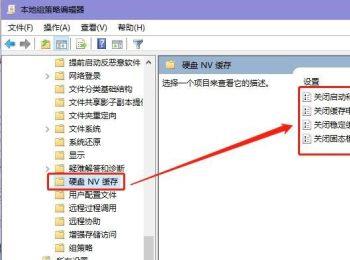 7. 在【硬盘NV缓存】选项上双击,然后在右侧打开的选项中,分别双击各个选项,在弹出的窗口中,全部点选上【已启用】,最后分别点击确定即可解决。