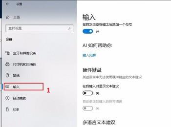 4. 然后在打开的页面,点击左侧的输入选项,在右侧打开的页面,点击下方的“高级键盘设置”选项;