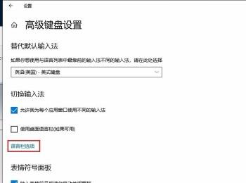 5. 如图,在弹出的高级键盘设置窗口中,点击“语言栏选项”;
