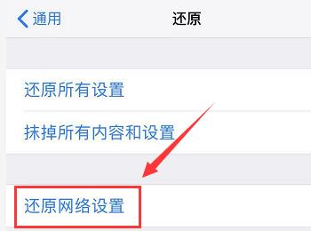 6. 第六步在弹出的菜单栏中,根据下图箭头所指,再次点击【还原网络设置】选项。