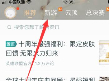 2. 第二步,进入掌上英雄联盟主页后,点击上方的新游选项。
