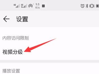 3. 进入设置页面后,我们就可以看到内容访问限制下的【视频分级】选项,点击。