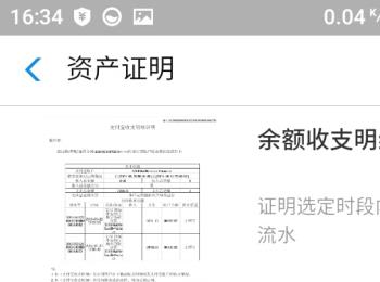 4. 如图,在打开的资产证明页面,根据自己的需要选择申请:余额收支明细(余额流水)、余额资产证明或理财资产证明。
