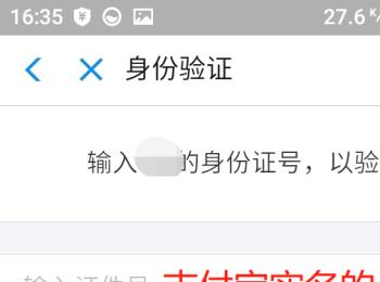 6. 接下来需要进行身份验证,输入我们支付宝实名的身份证号,然后点【下一步】。