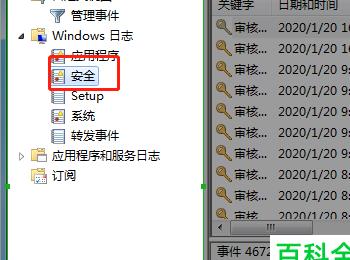 4. 如图,在打开的页面,左侧找到”Windows日志“,展开,就可以看到“安全”选项了。