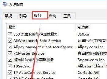 2、切换到【服务】选卡,在下面单击勾选“隐藏所有 Microsoft 服务”,然后点击全部禁用;