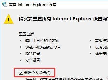 9、勾选【删除个人设置】,在下面点击【重置】;