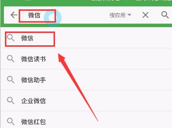 2. 进入首页后,在上方搜索框中输入“微信”并搜索。