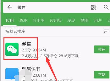 3. 出现下图所示页面后,直接点击微信图标,不要点击其后的“打开”。