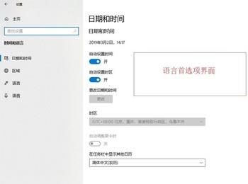 4. 进入时间和语言界面后,点击左侧列的“语言”。