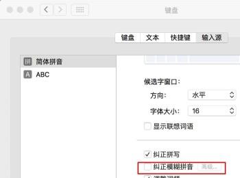3. 接着,滑动页面,找到“纠正模糊拼音”选项并勾选。