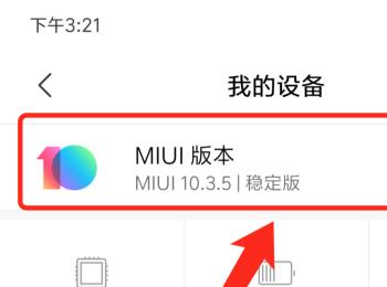 3.第三步,在下图所示的我的设备页面中,点击箭头所指的MIUI版本选项。