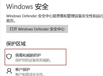 3. 第三步,在下图所示的WINDOWS安全页面中,点击病毒和威胁防护选项。