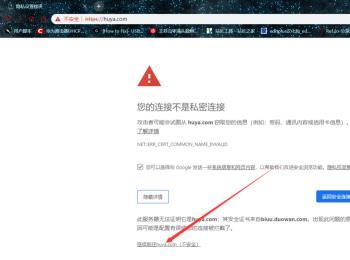 3. 第三步在跳转的页面中,根据下图所示,如果弹出【您的连接不是私密连接】警告。