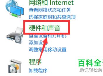 2.第二步,来到下图所示的控制面板页面后,点击箭头所指的硬件和声音选项。