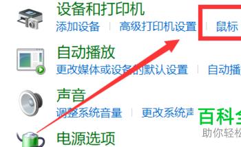 3.第三步,在下图所示的硬件和声音页面中,点击箭头所指的鼠标选项。