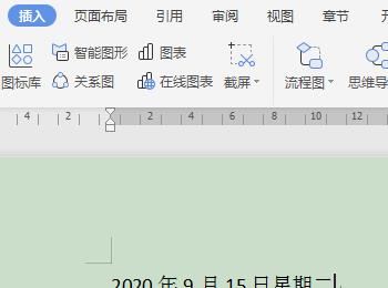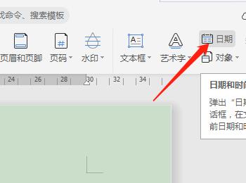 3.如图,在打开的文档编辑页面,点击上方的插入选项,然后在打开的插入选项下,找到日期选项,点击。